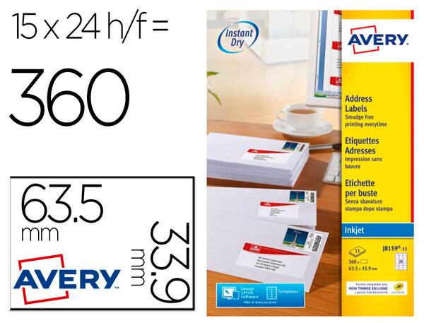 Découvrez les étiquettes Avery Jet Encre Mon Tiempre en Ligne, conçues pour répondre à tous vos besoins d'étiquetage avec une qualité d'impression exceptionnelle. Ces étiquettes sont parfaites pour l'étiquetage de courrier, de dossiers ou de produits grâce à leur séchage instantané qui permet une impression propre et sans bavure. Avec une certification FSC, elles répondent également aux normes environnementales.