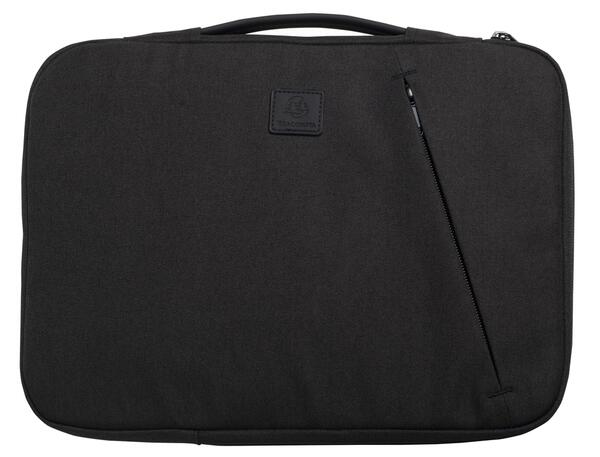 Housse ordinateur 15-16'' Business. Fine et légère, cette housse se glisse facilement dans un sac ou une valise et protège votre ordinateur comme une seconde peau. De format intérieur 39 x 28 x2 cm (taille extérieure 41 x 31 x2,5 cm), elle est compatible avec tout ordinateur portable standard de 15 à 16 pouces. Finitions soignées : poignée rétractable pour une bonne prise en main, rembourrage intérieur en mousse (même dans les angles et sur les cotés où les risques de choc sont plus importants), et élastique intérieur siliconé pour un parfait maintien de l'ordinateur, quelle que soit sa taille. Petite poche à l'avant et fermeture zippée sur 2 cotés seulement pour éviter de faire tomber l'ordinateur en ouvrant la housse trop rapidement. Fabriqué à partir du recyclage de 7 bouteilles en plastique, cette housse contient 58% de polyester recyclé post-consommation (rPET).