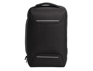 Sac à dos ordinateur coque Exactive. Le sac à dos éxactive est confortable et pratique pour transporter son ordinateur, ses accessoires et ses documents. L'accès au compartiment principal se fait par l'arrière du sac à dos pour une meilleure protection contre le vol. Le compartiment principal contient 2 poches matelassées séparées pour tablette et ordinateur jusqu'à 16'', ainsi que plusieurs poches intérieures zipées pour organiser le contenu. Le contenu du sac peut être organisé en deux parties distinctes grâce à une séparation amovible. Un passant au dos permet de glisser le sac à dos le long d'une poignée télescopique de valise. Avec une petite poche zippée à l'arrière pour accéder rapidement à son portefeuille, téléphone, ... Possibilité de recharger un téléphone ou une tablette grâce au port USB intégré (câble et chargeur non fournis). Particulèrement adapté pour les cyclistes et les motards : - la poche latérale étanche contient une housse imperméable permettant de protége