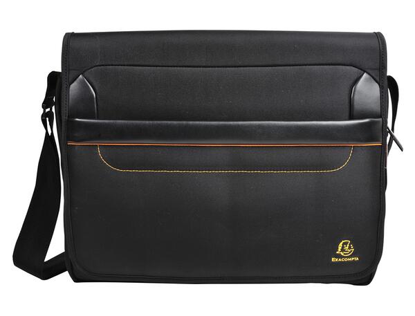 Sac messenger ordinateur Exactive (14). La besace Exactive allie style et efficacité. Grâce à sa fermeture aimant, le rabat se manipule aisément tout en gardant un contenu parfaitement sécurisé. La poche sur le rabat permet de ranger quelques petits objets précieux. La première poche zip offre différents emplacements pour ranger stylos, cartes de visite, téléphone, tablette... La 2ème poche zip contient un compartiment renforcé pour ordinateur jusqu'à 14, ainsi qu'un espace pour classer des documents. Un passant au dos permet de glisser la besace le long d'une poignée télescopique de valise. Contient 70% de polyester recyclé (rPET) fabriqué A partir du recyclage de 19 bouteilles en plastique. Capacité 7 litres. Garantie 2 ans. couleur : noir