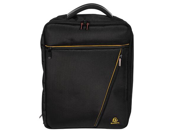 Sacoche sac à dos Dual 15,6'' Exactive. Le sac Dual de la gamme éxactive est un mixte sacoche et sac à dos, soit en porté main ou épaule, soit en porté sur le dos grâce à ses poignées et anse détachable. Léger (moins d'1kg), il permet de transporter un ordinateur jusqu'à 15 ,6'' (38x27x3cm), des documents et de nombreux accessoires. Il présente de nombreuses poches verticales et horizontales, dont des espaces pour smartphone, stylos, cartes... et possède 2 compartiments intérieurs dont 1 renforcé pour protéger l'ordinateur ou même une tablette. Un passant au dos permet de glisser le sac à dos le long d'une poignée télescopique de valise. Contient 61% de polyester recyclé (rPET) fabriqué à partir du recyclage de 22 bouteilles en plastique. Capacité 12 litres. Garantie 2 ans. Couleur : noir.
