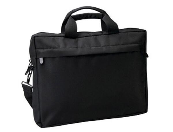 En polyester. Bandoulière réglable. Compartiment intérieur pour ordinateur portable jusqu'à 15,6''. 1 poche avant zippée et 1 avec fermeture par scratch au dos pour ranger dossiers, chargeurs et autres petites affaires. Sacoche avec fermeture zip. Coloris noir. Dimensions extérieures : 280 x 350 x 60 mm.