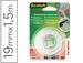 Ruban de fixation FIX MOUSSE DOUBLE FACE. Pour fixer des objets sur des supports tels que le plastique, la peinture, le bois, le verre, la céramique, etc. Usage intérieur, prêt à l'emploi. Épaisseur : 1,6 mm. 19 mm x 1,5 m'.