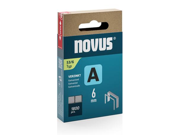 Novus A Typ 53/6. Dimensions 11,3 x 0,75 x 4 mm. Poids du paquet 102g. Boite de 2000 agrafes