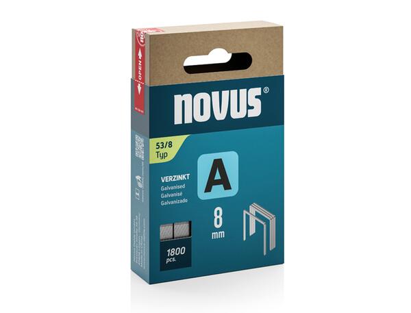 Novus A Typ 53/8. Dimensions 11,3 x 0,75 x 4 mm. Poids du paquet 102g. Boite de 2000 agrafes