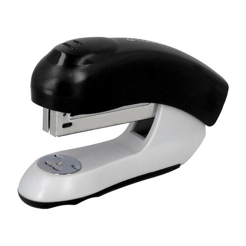 Agrafeuse en plastique ABS avec mécanisme métallique. Utilise des agrafes n° 24/6 et 26/6. Longueur de l'agrafage à 76 mm du bord de la feuille. Charge 3 peignes (150 agrafes). Longueur de la base : 177 mm. Dimensions : 43 x 67 x 177 mm. Couleur noire.