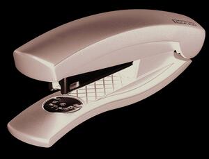 Agrafeuse de bureau, légère, pratique et maniement agréable, pour tous les petits travaux d'agrafage. Canal d'agrafes plastique et guide d'agrafes simple, poids : 140 g. Capacité d'agrafage : 15 feuilles. Profondeur d'agrafage 65 mm. Pour agrafes 24/6 et 26/6. Max 15 feuilles