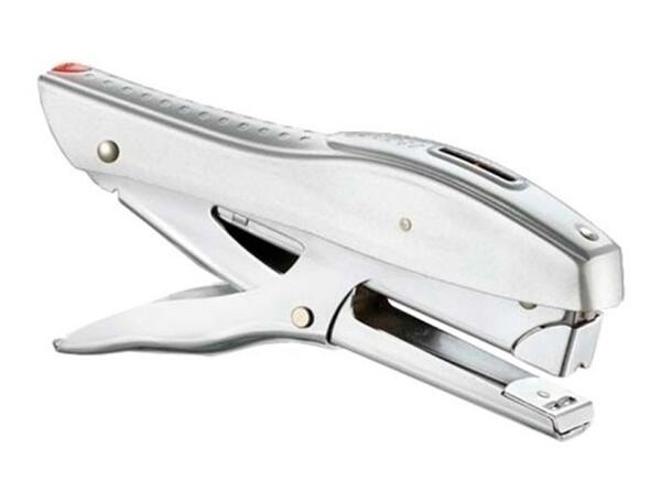 100% métal pour une résistance optimale. Design ergonomique et mécanisme démultiplié pour un usage prolongé sans fatigue. Contenance : 210 agrafes. Utilise des agrafes n°10. Profondeur d'agrafage : 60 mm. Ôte-agrafes intégré. Trou d'accrochage. Visualisation du stock d'agrafes. Capacité d'agrafage : 20 feuilles. Chargement à l'avant. Coloris argent. Dimensions : 193 x 80 x 26 mm.