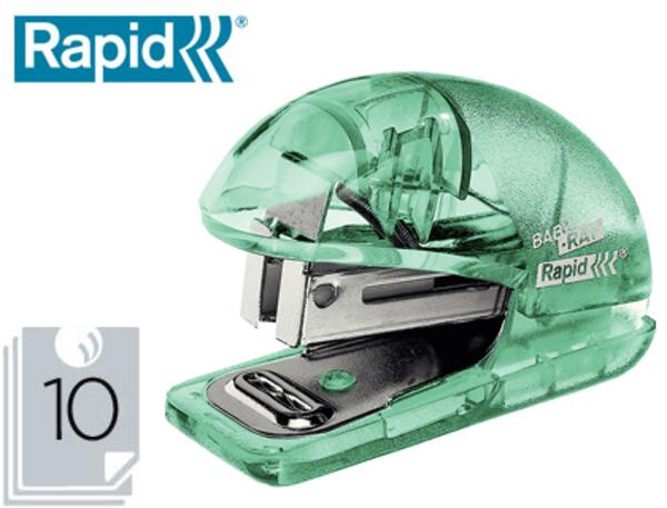 Agrafeuse Mini Rapid Colour'Ice 125x93x33mm 10 Feuilles Agrafes 24/6 Coloris Vert