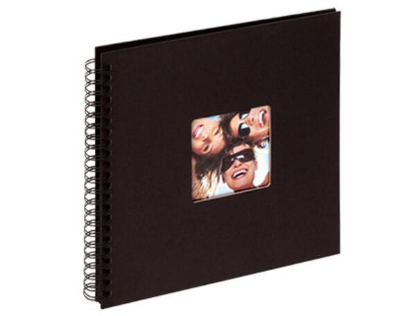 Couverture vinyle avec fenêtre prédécoupée pour personnalisation (photo amovible). 50 pages pour 200 photos de 100 x 150 mm et 100 photos de 130 x 180 mm. Reliure spirale métal noir. Feuillet noir. Dimensions : 300 x 300 mm. Coloris noir.