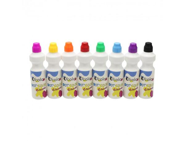 Marqueur flacon à embout mousse adapté aux plus jeunes, pour colorier sans effort et sans risque d'écraser la pointe. Ergonomique. Lavable et coloris miscibles. Lot de 8 applicateurs gouache 75 ml - Coloris assortis