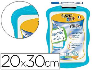 1 face unie et 1 face quadrillée + 1 effacette + 1 feutre Velleda 1721. Forme amusante et ergonomique conçue spécialement pour les enfants. Matière recyclée. Dimensions : 200 x 300 mm'.