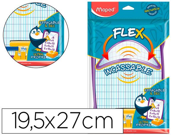 ARDOISE BLANCHE MAPED FLEX 195X270MM 1 FACE UNIE 1 FACE QUADRILLÉE 1 EFFACETTE 1 FEUTRE 1 PORTE ACCESSOIRE INCASSABLE