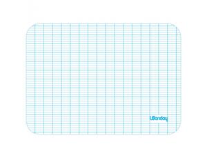 Ardoise blanche effaçable à sec sans cadre. 1 face unie et 1 face séyès. Format : 18 x 25 cm