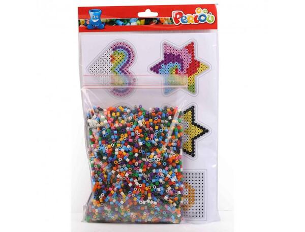Ludiques et colorées, les perles à repasser PERLOU peuvent être utilisées facilement par l'enfant, sous la surveillance d'un adulte. Cette activité créative permet de créer des personnages ou décors et de développer la concentration et l'adresse chez les jeunes enfants.Sachet de 4 500 perles de 5 mm avec 8 plaques en formes assorties et 12 modèles de réalisation