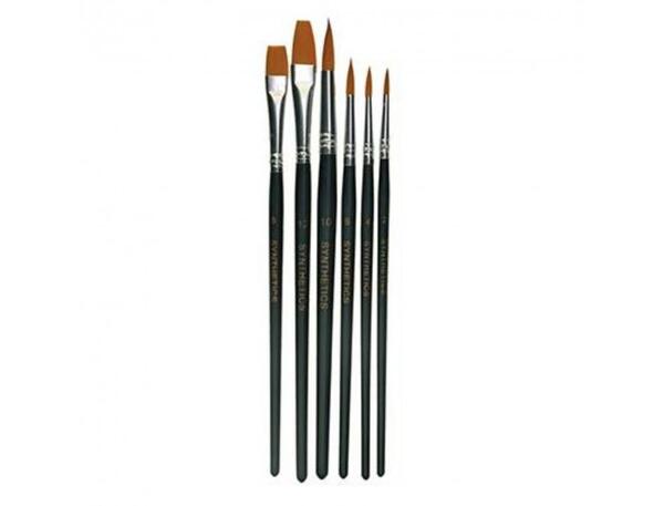 Pinceaux et brosses en fibres synthétiques, robustes et élastiques, pouvant être utilisés pour l'acrylique. Assortiment de 4 pinceaux (n°4, n°8, n°12, n°20) et 2 brosses (n°8, n°12)
