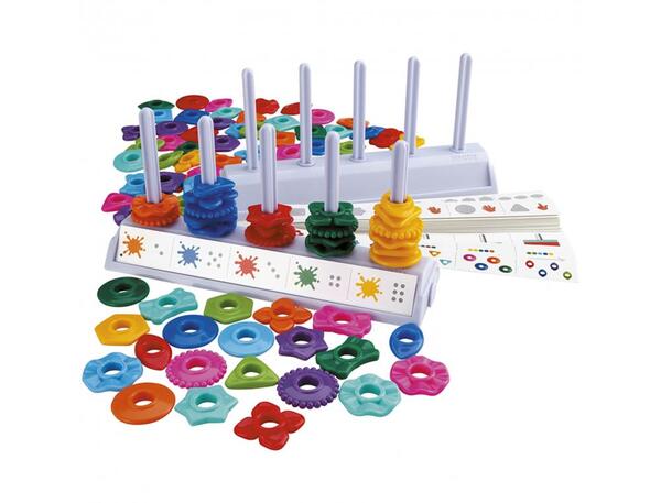 Atelier d'entraînement qui propose des activités de tri, de logique et de numération. Contenu : 42 fiches d'activités (7 séries de 6 fiches), 87 perles plastique (10 formes et 10 couleurs), 2 abaques et 1 livret pédagogique