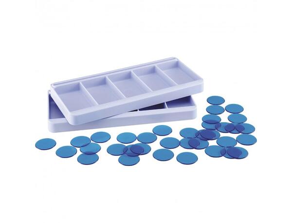 Chaque enfant dispose d'une boîte à compter dans laquelle sera insérée une fiche consigne. À l'aide des jetons correspondants, il devra compléter les cases de la boîte en respectant chacune des consignes figurant sur la fiche. Permet de faire travailler 2 enfants supplémentaires. Contenu : 2 boîtes de tri en plastique, 18 jetons en bois (5 éléphants, 4 pingouins, 4 tigres, 5 oursons) et 35 jetons ronds en plastique