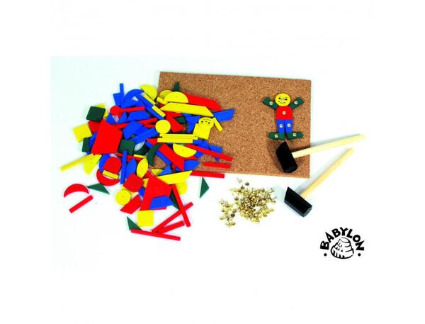 Contenu : 120 pieces en bois à piquer, 1 plaque de liège, 2 marteaux, 120 clous - Dim. de la plaque : 25 x 18 cm