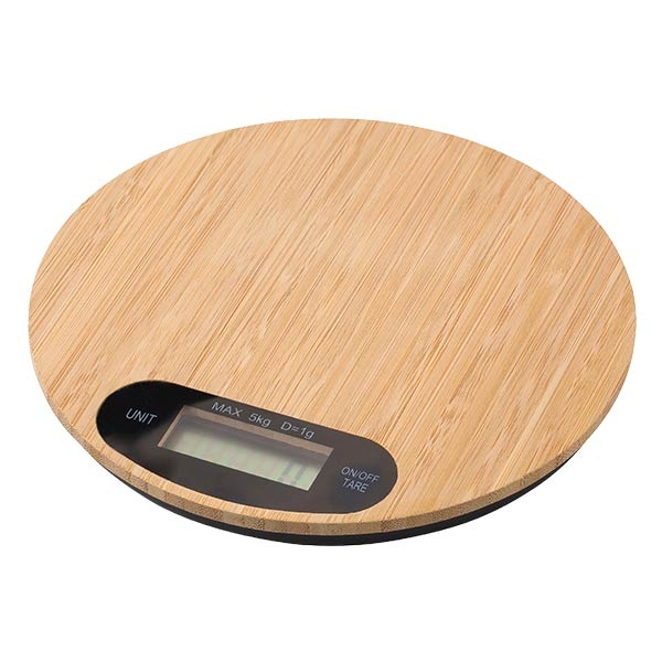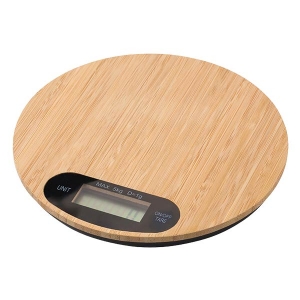 Balance de cuisine en bambou d’une pesée maximale de 5 kg.