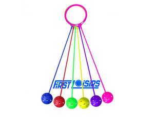 Doté d'un rond de 16 cm pour passer autour de la cheville, corde PVC trés solide longue de 50 cm avec à son extrême une balle trouée de 7 cm. L'enfant met en éveil toute son adresse et sa dextérité pour exercer une rotation autour de son mollet. Possibilité de compliquer le jeu en sautant de l'autre jambe. Coloris assortis. Dim. de la corde (L) : 50 cm - Dim. Intérieur du cerceau (Ø) : 14 cm - Dim. de la balle (Ø) : 7 cm - Le lot de 6