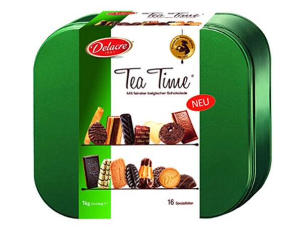 Boîte de biscuits Teatime. Laissez-vous surprendre par la générosité de l'assortiment Tea Time et dégustez ses délicieux biscuits. Poids : 1 kg.