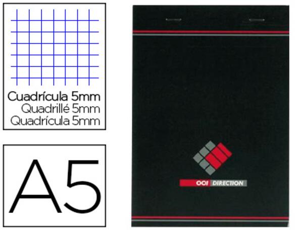 Bloc agrafé en tête, couverture vernie. 200 pages détachables, 70 g/m². Réglure 5 x 5. Produit certifié PEFC.