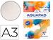 Bloc collé. Papier aquarelle 100% cellulose 300g d'une blancheur naturelle, de qualité étude. Un grain moyen fin, davantage marqué sur une face du papier. Sans acide, de pH neutre : excellente conservation et bonne capacité d'absorption.