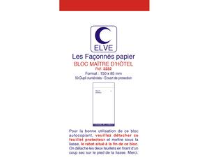 Le Bloc Maître d'Hôtel Elve Papier Autocopiant Numéroté 1/50 85x150mm 50 Duplis Bleu Rouge est l'outil idéal pour les professionnels de la restauration et de l'hôtellerie. Certifié PEFC et FSC, ce bloc garantit une gestion efficace et responsable des commandes grâce à ses caractéristiques uniques.
