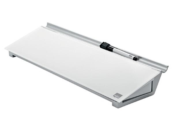 Bloc-notes unique en verre trempé équipé d'un tiroir pratique et discret pour marqueurs, trombones, etc. Se positionne sur la droite ou la gauche du bloc-notes. Alternative élégante à la prise de notes sur papier. Excellente effaçabilité et résistance maximale aux taches d'encre, aux traces de marqueur, aux rayures et aux bosses. Design moderne. Entretien facile. Marqueur Nobo inclus. Coloris blanc. Dimensions : 460 x 60 x 150 mm. Poids : 1,18 kg.
