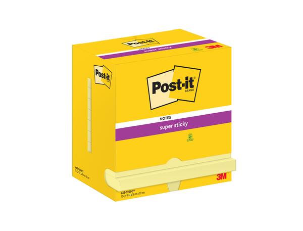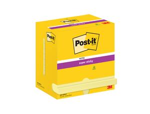 Notes Post-it® Super Sticky, Jaune Canari, 76 mm x 127 mm, 90 Feuilles/Bloc, 12 Blocs/Paquet. Les Notes Post-it® Super Sticky ont un pouvoir adhésif 2x plus fort que les Notes Post-it® standard. Elles sont résistantes, polyvalentes et sont conçues pour rendre vos messages plus visibles. Leur couleur Jaune Canari est idéale pour prendre des notes ou laisser des messages et pense-bêtes. Les Notes Post-it® Super Sticky sont fabriquées à partir de fibres de papier certifiées PEFC, provenant de forêts gérées durablement et de sources contrôlées.