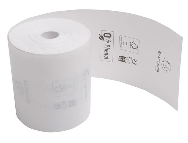 Bobine pour tickets de caisse 80x72mm - 76m - 1 pli thermique 48g/m2 sans phénol et sans plastique. Format de la bobine : 80 mm de laize (largeur) et 72mm de diamètre. Métrage (+ ou - 2m) : 76 m. Convient à toute marque de caisse thermique. Papier garanti sans phénol, c'est-à-dire sans Bisphénol A, mais également sans bisphénol S. La mention 0% phénol, le logo FSC et le logo Exacompta sont imprimés au verso du papier. Sans mandrin et sans film plastique pour réduire au maximum les déchets tout en conservant la même efficacité. Emballage en boîte carton refermable pour une meilleure protection contre la lumière et l'humidité. Les bobines se conservent ainsi dans de meilleures conditions avant utilisation. Papier haute sensibilité garantissant une bonne lisibilité de l'impression. Avertissement de fin de rouleau. Fabrication française. Boîte de 10 bobines - carton de 3 boîtes.