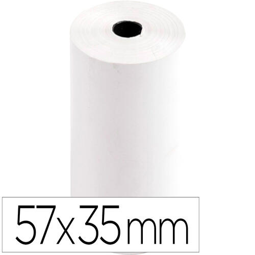 Rouleaux de papier pour calculatrices, caisses enregistreuses, calculatrices imprimantes, etc. Mandrin de 12 mm. Papier de 70 g/m². Dimensions : 57 x 35 mm.