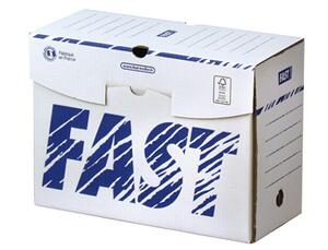 En carton ondulé blanc. Livrée à plat. Sous film pour les dos de 80 et 100 mm. Indexation 5 faces. Pour documents rigides de 250 x 330 mm. Dimensions : 685 x 530 x 65 mm. Produit certifié FSC.