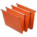 En kraft 220 g. Barrette de suspension métallique. Porte-étiquette plastique effet loupe. Double mise en continu par volet d’agrafage et boutons-pression métal. Fond plat renforcé en carte forte noire pour les fonds de 15 et 30 mm. Entraxe : 33 cm. Coloris orange.