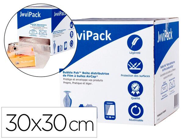 Enveloppe et protège les produits pour le transport et l'expédition. Super étanche, les bulles AirCap restent gonflées plus longtemps. Film polyéthylène 40 microns avec bulles d'air AirCap. Diamètre 10 mm. Résistant aux chocs et absorbant les coups. Protection performante et durable. Boîte distributrice protégeant de la poussière. Dimensions d'une feuille : 300 x 300 mm. Boîte de 166 feuilles.