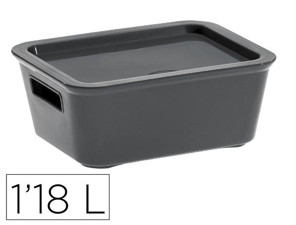 Multirangements pour documents, fournitures ou petits objets. Echancrure sur le corps de la boîte pour apercevoir le contenu. Emboîtable et superposable grâce au couvercle. Trou de préhension pour transporter la boîte. PP résistant, 100 % recyclé et recyclable. Coloris gris.