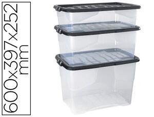 BOÎTE DE RANGEMENT. En polypropylène. Décor contrasté mat et brillant. Transparent avec couvercle noir. 600 x 397 x 252 mm, 535 x 340 x 240 mm.
