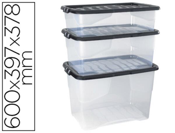 BOÎTE DE RANGEMENT. En polypropylène. Décor contrasté mat et brillant. Transparent avec couvercle noir. 600 x 397 x 378 mm, 535 x 340 x 370 mm.