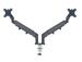 Le bras double pour écran ergonomique améliore la posture, favorise l'alignement des yeux et le confort du cou et des épaules. Sa conception peu encombrante permet de l'installer dans des espaces réduits tout en offrant une profondeur de champ maximale et une ergonomie visuelle optimale Les écrans peuvent être réglés de manière totalement indépendante et les bras support plus courts permettent aux écrans de différentes tailles de s'aligner facilement Deux bras assistés par ressort pour régler facilement la hauteur des écrans (185 mm-435 mm) Pivotement et rotation de l'écran à 180°, inclinaison de +90°/- 90° et possibilité de réglage vers le haut, le bas, l'avant et l'arrière Conception solide et stable pour supporter 2 écrans plats ou incurvés de 17 à 32 pouces pesant jusqu'à 9 kg chacun Facile à installer grâce à la plaque Vesa® détachable à dégagement rapide (75 et 100 mm) et à la pince type serre-joint en caoutchouc siliconé qui réduit les vibra