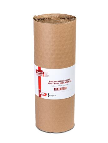 Découvrez notre rouleau de papier bulle en kraft recyclé, conçu pour protéger vos articles lors du transport. Ce matériau d'emballage naturel et écologique est sans colle ni produits chimiques ajoutés, ce qui en fait une solution respectueuse de l'environnement tout en offrant une protection efficace contre les chocs.