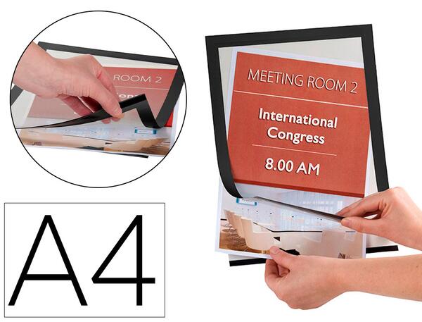 Cadres porte-affiches avec système aimanté pour l'introduction pratique et rapide des documents A4. Peuvent être fixés sur des surfaces lisses grâce à leur dos adhésif amovible. À utiliser verticalement ou horizontalement. Pack de 2 cadres. Noir.