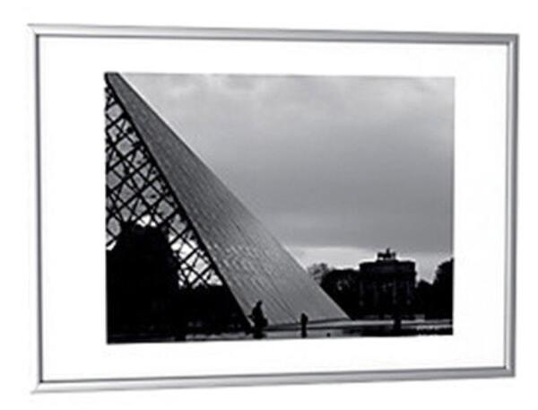 Profil en aluminium anodisé de 9 mm et fond rigide en medium de 3 mm. Fenêtre en plexiglas. Cadre orientable à la verticale ou à l'horizontale. Livré monté. Format A3. Photo d'ambiance non fournie.