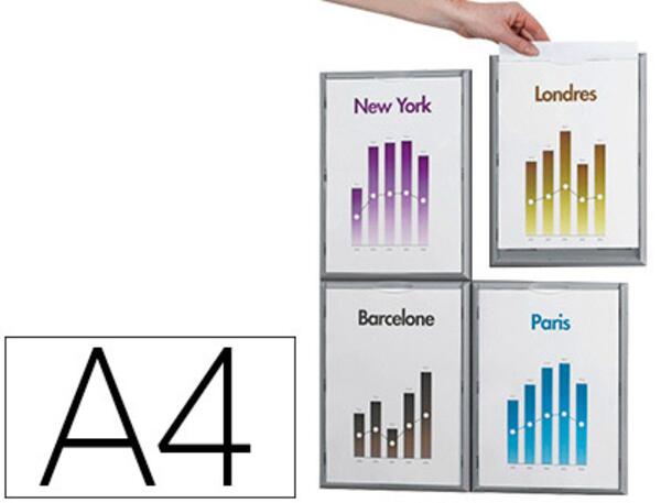 CADRES D'AFFICHAGE. Cadre en polystyrène, fenêtre en polystyrène cristal. Met en valeur les documents et les protège. Facilité et rapidité de changement des documents grâce à l'encoche de préhension. Orientable à la verticale ou à l'horizontale. Se fixe sur tous types de supports y compris les surfaces vitrées. Livré monté. Fixation par double face (accessoires fournis). Cadre coloris aluminium. A4.