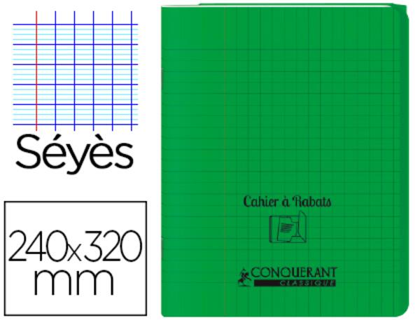 Cahier à rabat Conquerant Classique agrafe. Taille: 24x32, offrant une grande zone d'écriture. 48 pages: permettant une utilisation prolongée. Réglure séyès: favorisant l'écriture alignée. Couverture polypro avec 2 rabats rouge Conquérant: pour protéger efficacement le cahier et les notes prises à l'intérieur. Papier blanc 90g: de qualité et résistant aux frottements. Certifié PEFC: respect des normes environnementales.