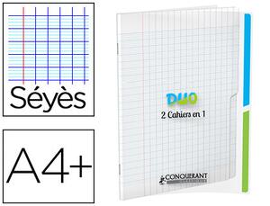 CAHIER 2 SECTIONS CONQUERANT CLASSIQUE AGRAFE 240x320 96P 90G SEYES POLYPRO INCOLORE