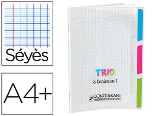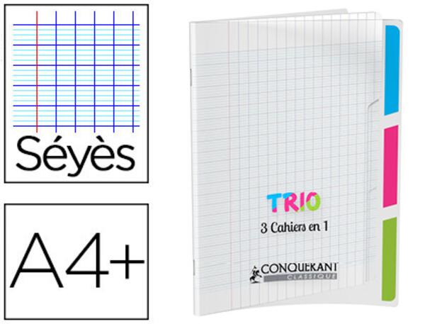 CAHIER 3 SECTIONS CONQUERANT CLASSIQUE AGRAFE 240x320 96P 90G SEYES POLYPRO INCOLORE