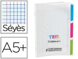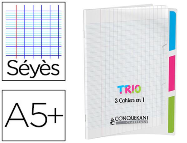 CAHIER 3 SECTIONS CONQUERANT CLASSIQUE AGRAFE 170x220 96P 90G SEYES POLYPRO INCOLORE
