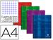 Cahier broché, papier vélin velouté 90 g/m², couverture souple pelliculée, dos toilé. Coloris assortis.