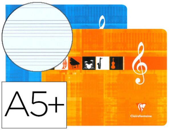 Cahier de musique piqué, papier vélin velouté 90 g/m², couverture pelliculée. Produit certifié PEFC.
